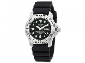 Klasična potapljaška ura z vodoodpornostjo do 20 atm (oziroma 200m globine). Ohišje iz legiranega jekla, s premerom 40mm, privijačeno krono in enosmernim obračajočim se ringom. Urni mehanizem je Seiko-Quarz in nam prikazuje tudi datum. Steklo je odporno na rise in je narejeno iz mineralnega stekla.