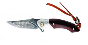 Kombinacija vrhunskega rezila iz japonskega damasta in palisandra.