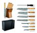 Komplet vključuje leseno držalo za nože ter ročni brusilnik.