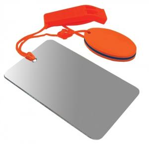 Zelo glasna piščalka za signalizacijo, ki je zelo enostavna za uporabo. Ima vrvico katero si nadanemo kar okoli vratu, tako da jo imamo vedno pri roki. Je zelo kompaktna in plava tudi na vodi, saj je iz trde plastike. Ogledalo je namenjeno za signalizacijo, lahko pa ga uporabljamo tudi za osebno nego.